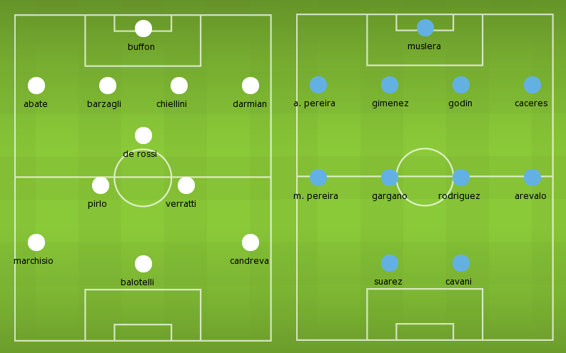Italy and Uruguay are ready to fight for their qualification spot today in their last group game at Estadio das Dunas.