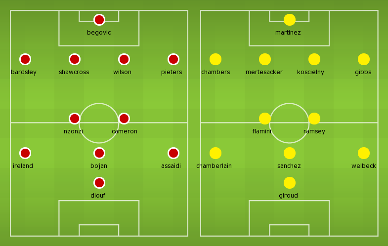 Victor Moses, Dionatan Teixeira, Peter Odemwingie and Steve Sidwell are out with injuries. And Stephen Ireland is doubtful for this game.