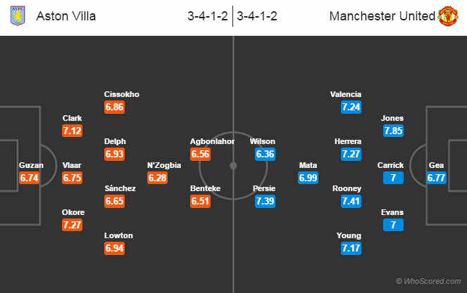 Aston Villa 1 – 2 Manchester United.