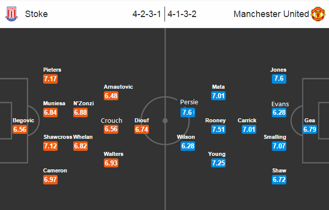 John Walters and Marko Arnautović start from the flank while Glenn Whelan and Steven N'Zonzi takes the holding role in front of the skipper Ryan Shawcross and Marc Muniesa. Geoff Cameron starts from the right side of the defence and Erik Pieters from the left.