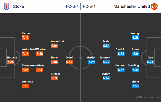 Stoke City 1 – 1 Manchester United, Wayne Rooney to score for the away side.